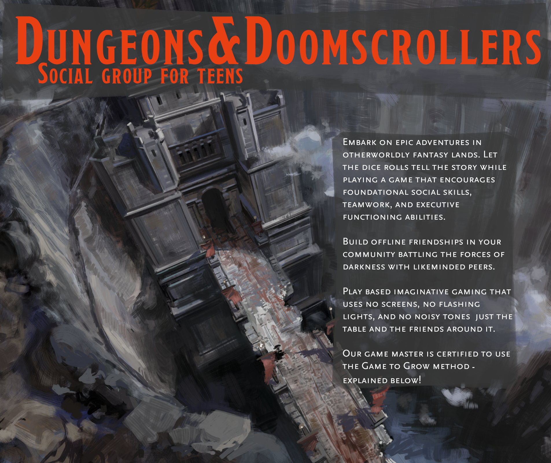 Caleb Akerstrom, TA-RPG, is a certified therapeutic game master, trained in the Game to Grow Method by the STAR institute. Having grown up as part of the disability community, he knows how hard it is for non typical teenagers to have a physical space to connect, especially in the modern day of video games and social media. Through providing an inclusive space for all to join and live out their fantasies he hopes to help young adults learn coping skills to manage the challenges and realities of adult life while building friendships that last far longer than sessions at the table.